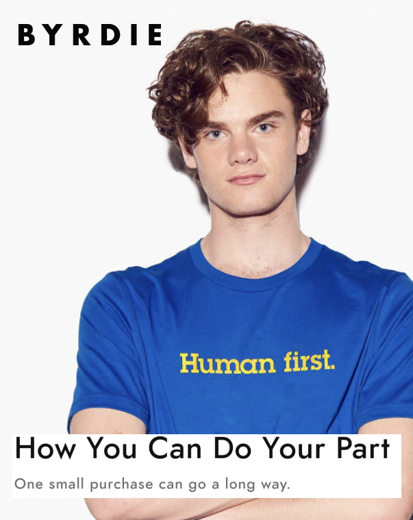 100% of proceeds from the Human First Collection will be donated to the UN Refugee Agency, which is providing emergency aid to families in Ukraine.