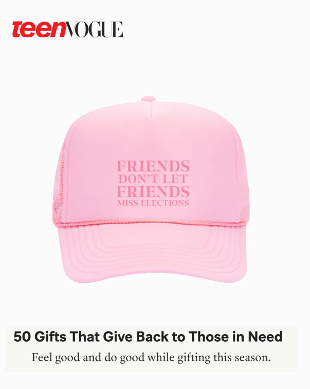 Social goods teamed up with their friends at Girl and the Gov on a new collection to encourage voting. Whether registering, requesting a ballot, or voting, they've got the perfect hat for you. Every proceed goes to Vote Forward, nonprofit empowering volunteers to help strengthen our democracy one letter at a time.